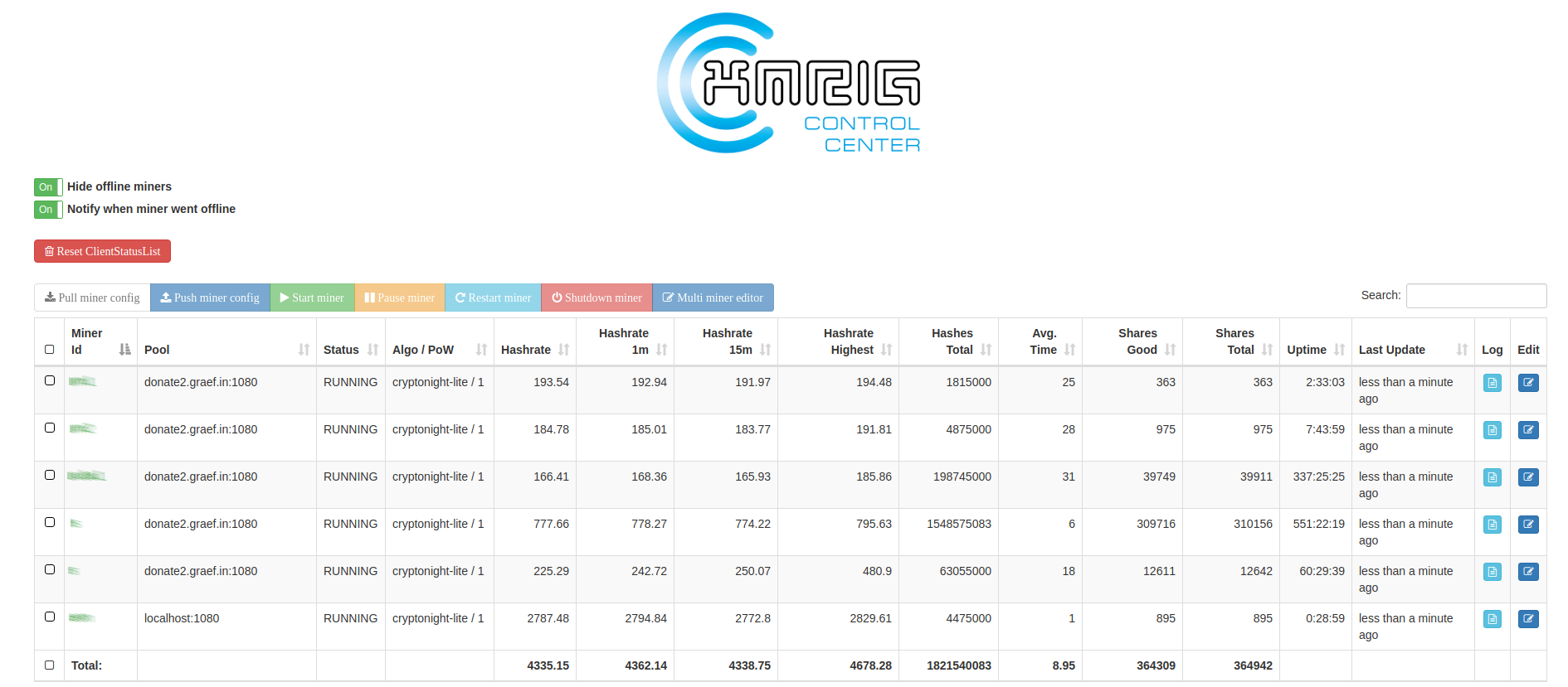 - remote control miners (start/stop/restart/shutdown)