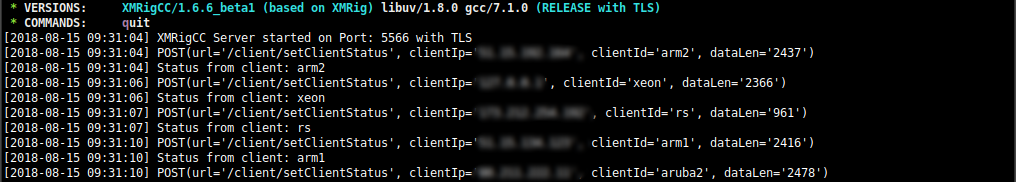 XMRigCC is a fork of XMRig which adds the ability to remote control your XMRig instances via a Webfrontend and REST api. This fork is based on XMRig and adds a "Command and Control" (C&C) server, a daemon to reload XMRigCCMiner on config changes and modifications in XMRig to send the current status to the C&C Server. The modified version can also handle commands like "update config", "start/stop mining" or "restart/shutdown" which can be send from the C&C-Server.