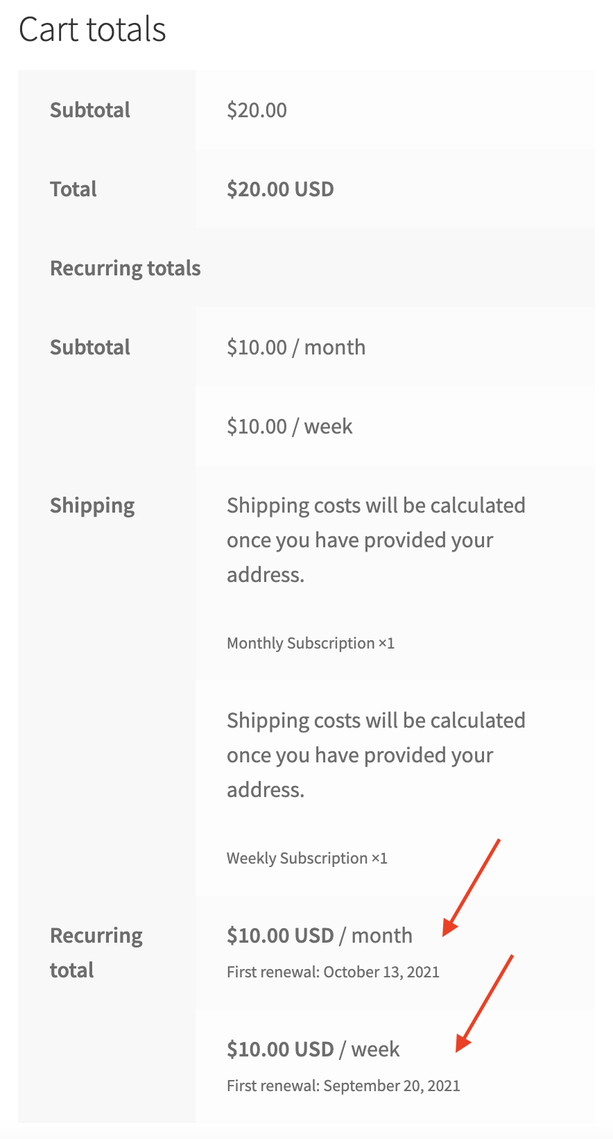 Navigate to the shop and add another subscription product to the cart. This subscription product should use a different billing interval to the last one