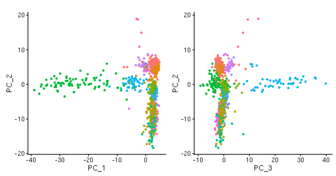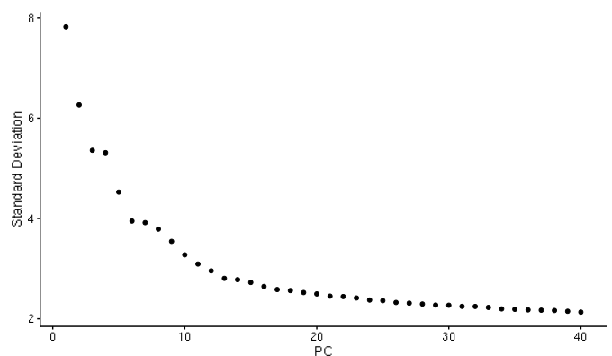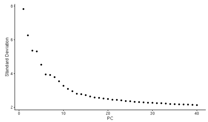 D-cellerate performs a principal components analysis (PCA) with either the variable genes or all genes in the cell. It will output a scree plot showing the proportion of variance explained by each principal component, as well as Scatterplots of the output of the principal component analysis.