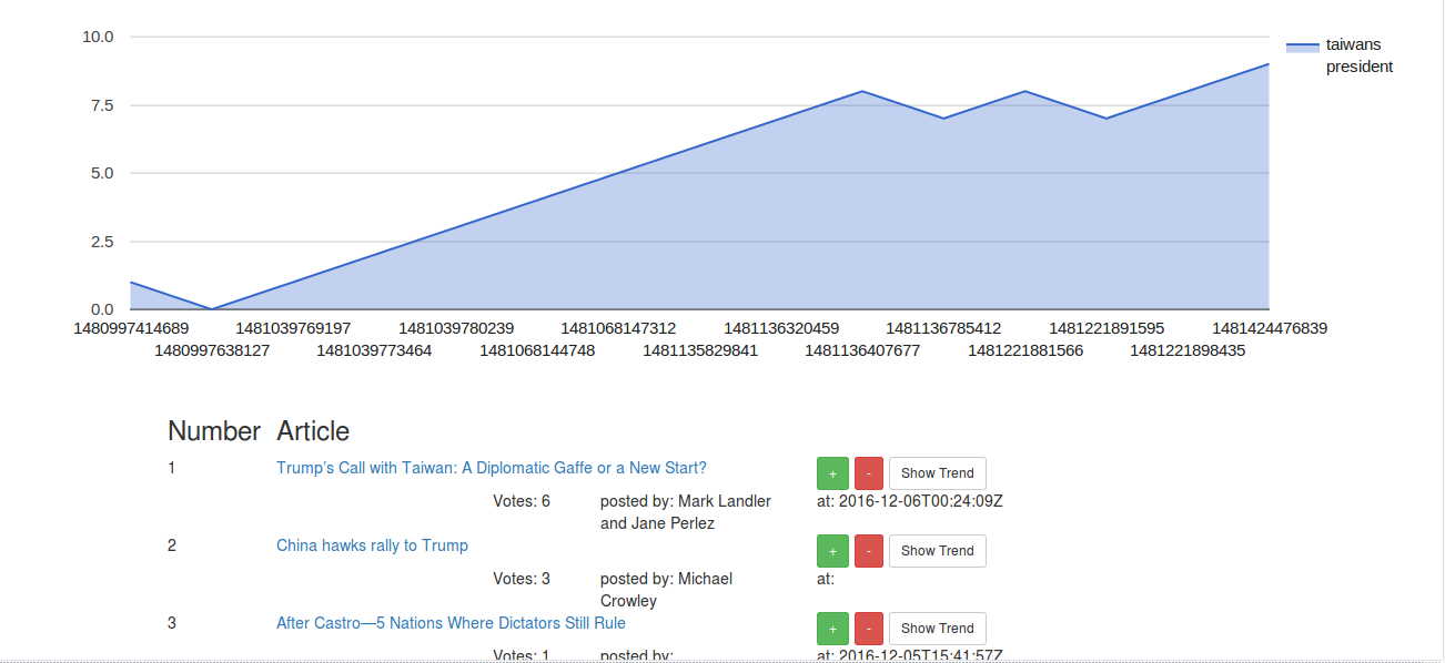 Each article has key phrases extracted from it and upvoting an article adds points to all key phrases associated to that article. Popular key phrases show us issues/topics people care most about.