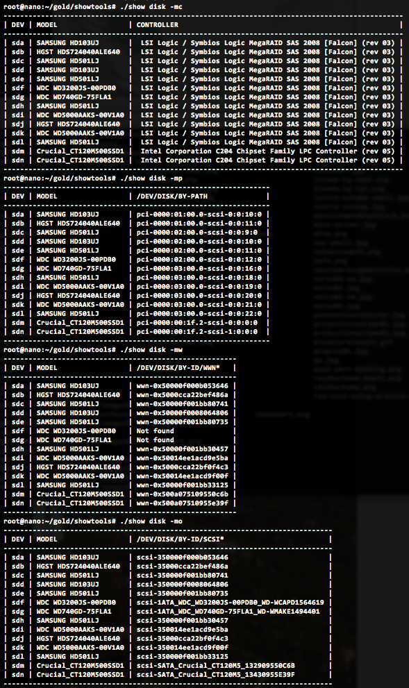 This tool displays information about disks or network cards in a nice ASCII table format on the command line.