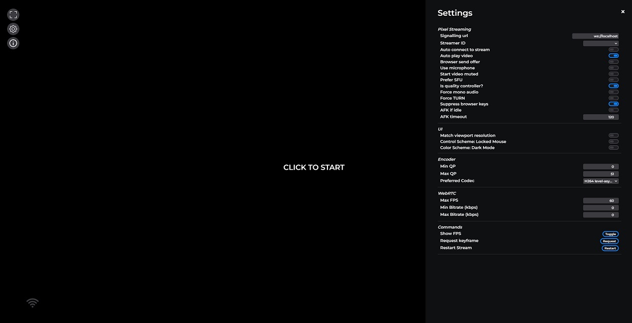 Using these two libraries gives a fully functional (and customizable) Pixel Streaming experience.