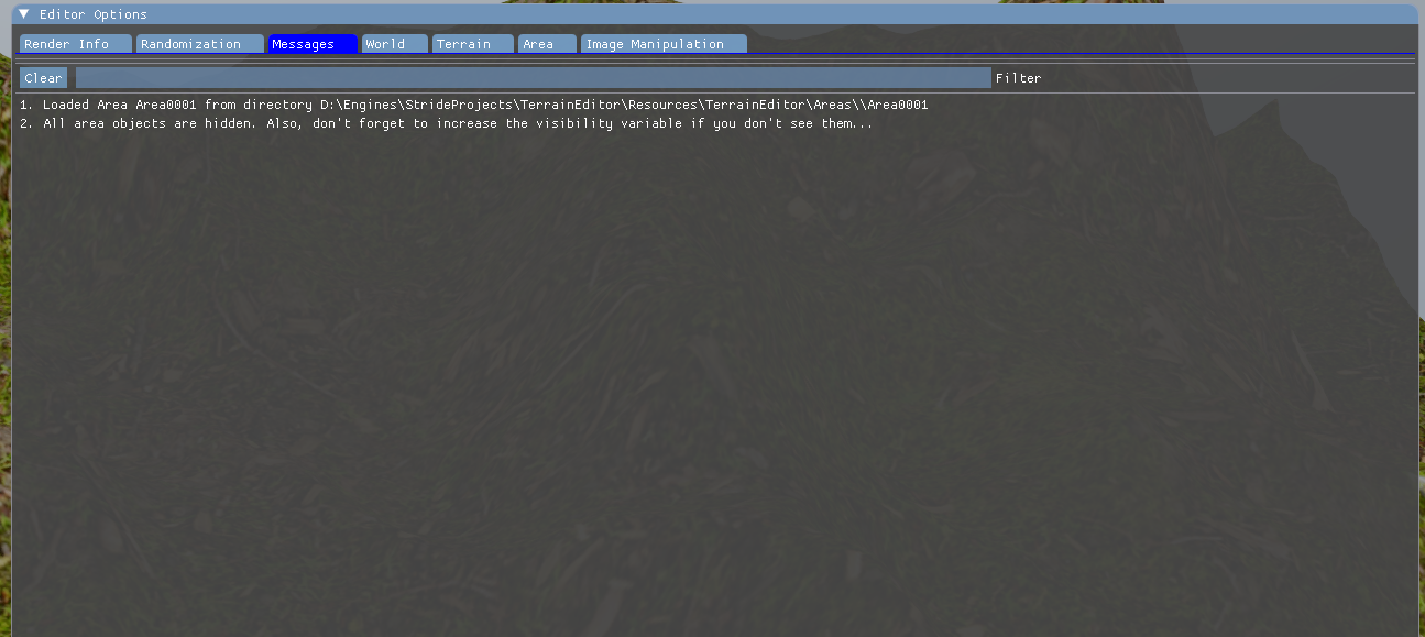 - All files involved with the current terrain are saved in the Resources/TerrainEditor/ folder. Click the SaveAs buttons to save them elsewhere.