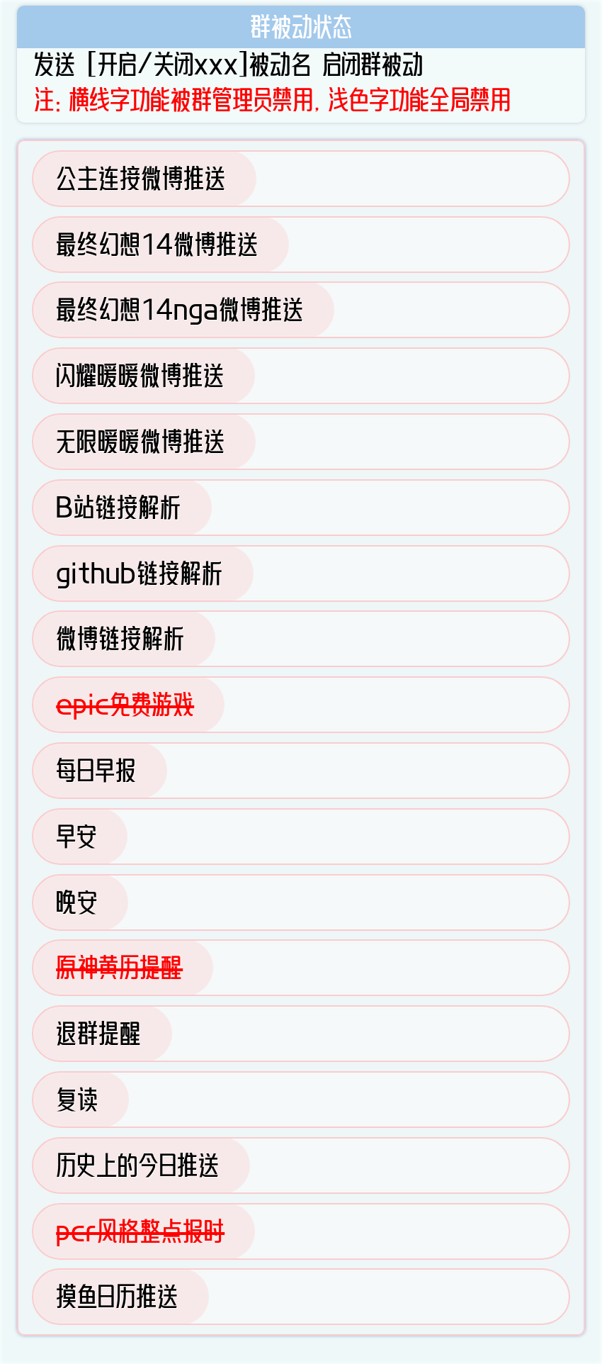 | enabled_group | 启用的群,仅默认启用状态为false时生效 |