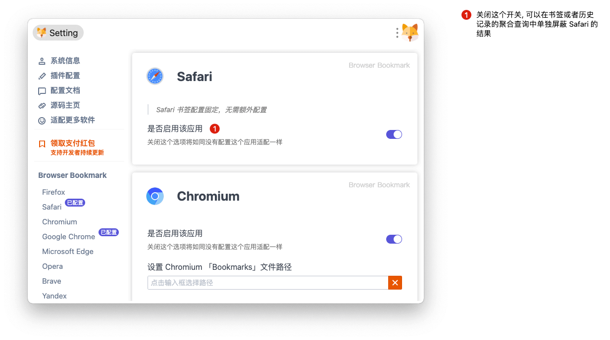 有的软件连配置文件也不需要,这一般出现在系统特有的软件上,比如 Safari 在 macOS 上的配置文件的路径是固定的,不需要额外配置。