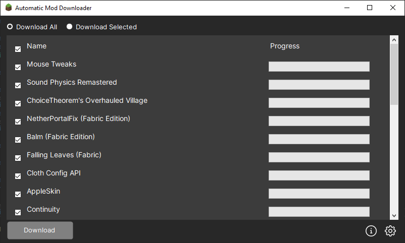 Minecraft Automatic Mod Downloader Saves NO data or any user information. NOTE: Not created for cheating purposes. All it does is download java files from specified url. Use it as you see fit, accepting responsibility. I don't take responsibility for what you do.