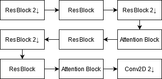 Our model has 4 main blocks: The Encoder: Encodes the image into a latent representation. It is composed of six residual blocks, two simplified attention modules and two convolutional layers.