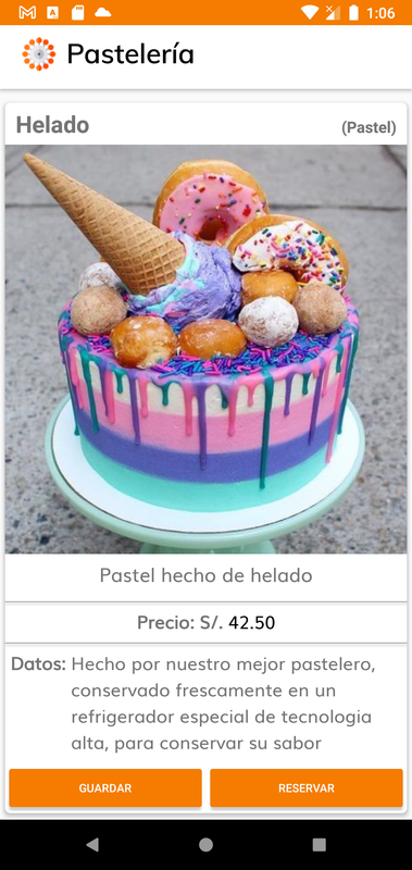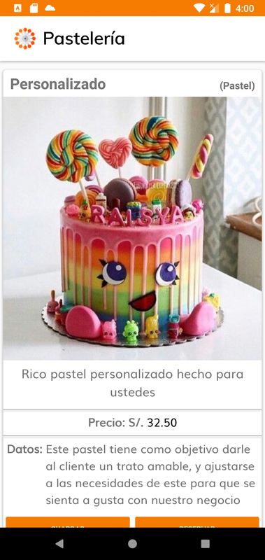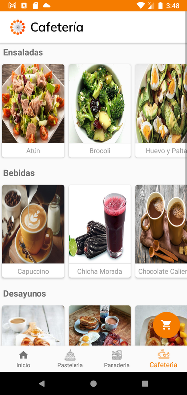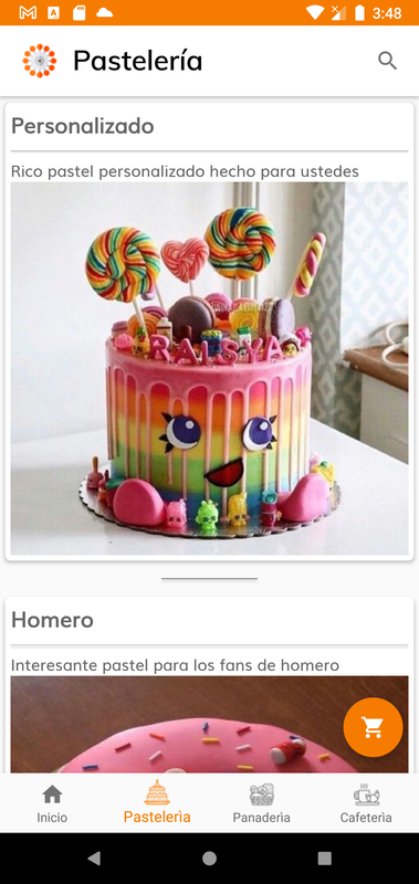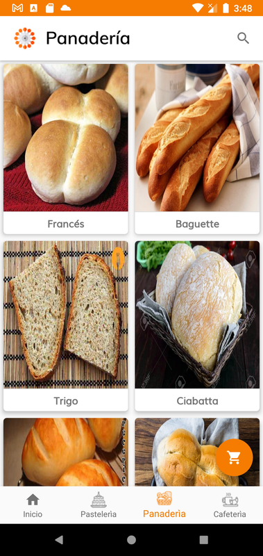 Bueno en esta ocasión mostraremos los 4 segmentos ( Inicio , Pastelería (El cual es el enfoque del proyecto), Panadería, Cafetería) que contiene la app, ya que este proyecto fue realizado para un proyecto universitario