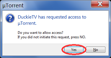 - this will delete the old authorisation and request a new one. When you get the µTorrent allow access dialogue, click the Yes button to establish a new authorised connection.