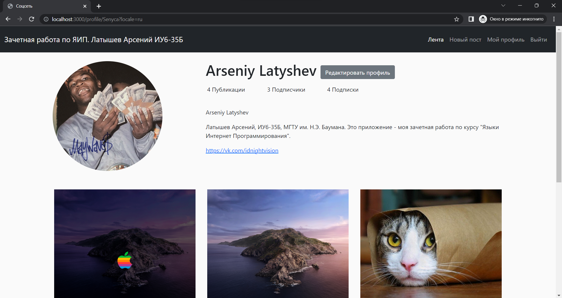 Проект post - моя зачетная работа по дисциплине "Языки Интрнет Программирования" в МГТУ им. Н. Э. Баумана. Февраль 2022 года.