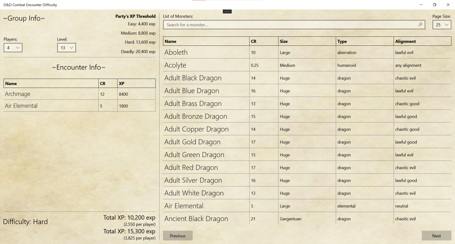 This is a UWP desktop application created with the purpose of computing the encounter difficulty for D&D 5e.
