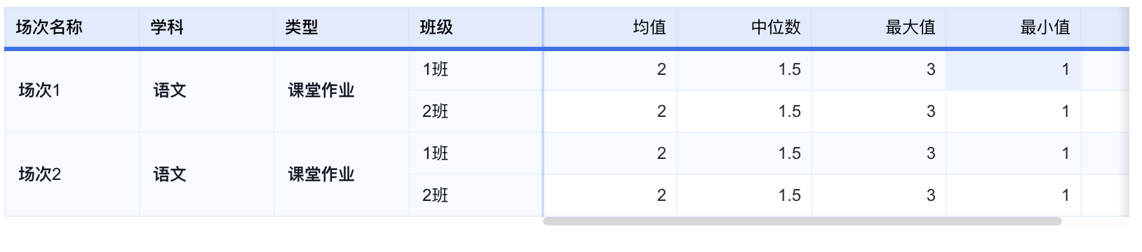 我们的需求是如上图所示的表格,具有列头合并功能。我能写出这样的第二行开始往下的配置,如下代码和图片所示。但我不知道如何实现第一行的需求,如果有实现过类似需求的。还请告知一下应该加什么配置🙏🏻