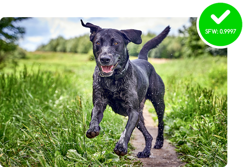 The NSWF Recognition API provides visual content analysis and outputs data about the images: Not Safe For Work (NSFW) or Safe For Work (SFW). It also gives the confidence percentage for each of the two classes.