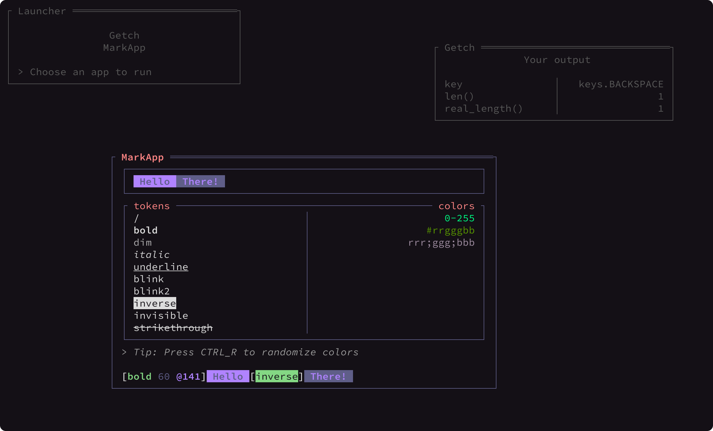 ptg --app {MarkApp, Getch}