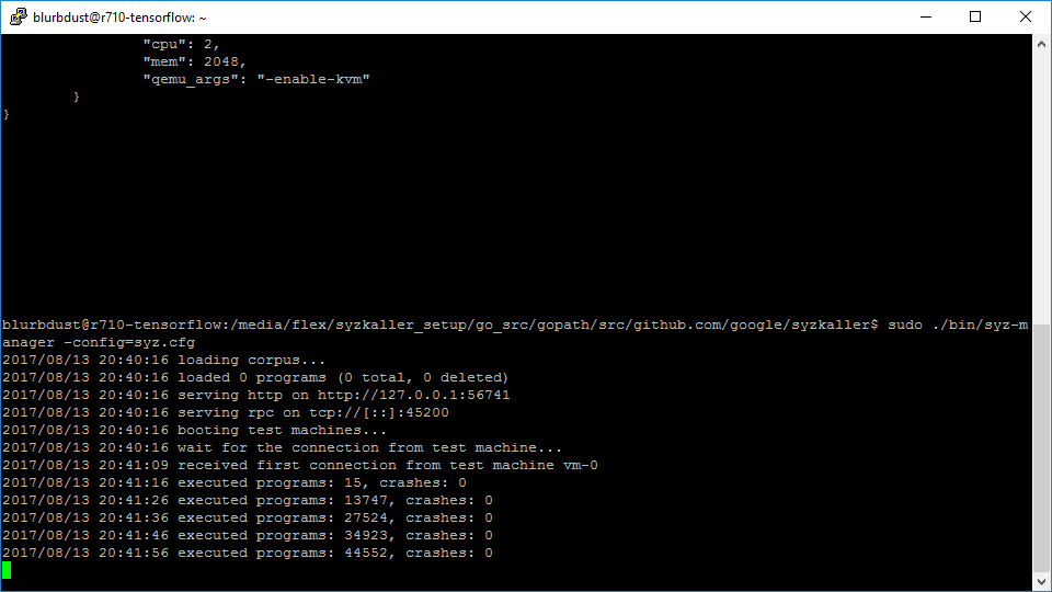 Today I got really bored and Rick and Morty Season 3 Episode 4 doesn't air until 10:30pm so I figured I'd try to setup syzkaller. That was a few hours ago. I am now finally compiling the Linux kernel from source so I'm about halfway done. Fun fact, you need bc installed and I didn't know that since it's not listed in the documentation. That made redo about 20 minutes of work before figuring out I needed to install another program.