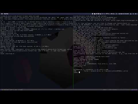 Here's a quick example of how you can use GDB with the Docker image. I'm using tmux in this video, but you can use any method to have multiple terminals.