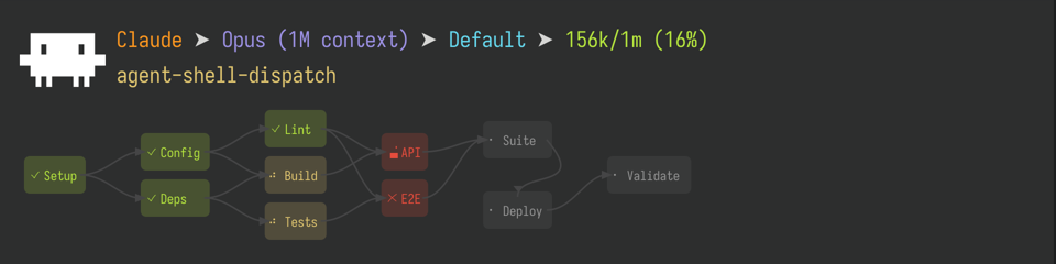 - Live SVG task graph -- dependency-aware DAG rendered in the header line with status colors and state indicators
