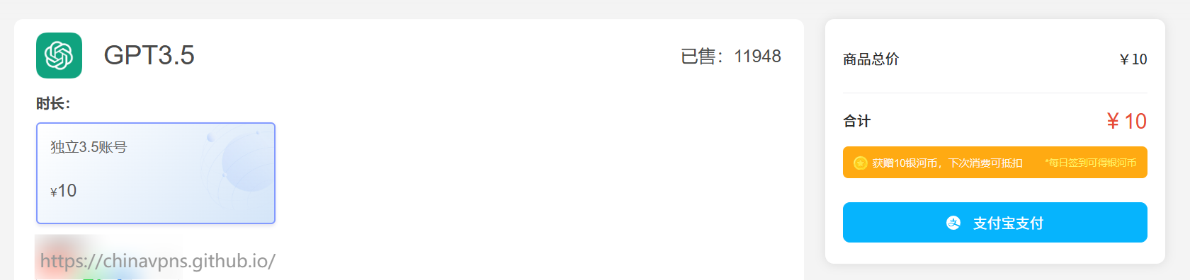 如果你还没有ChatGPT账号,可以通过银河录像局购买一个ChatGPT 3.5账号,价格也很便宜,每个账号仅需10元!