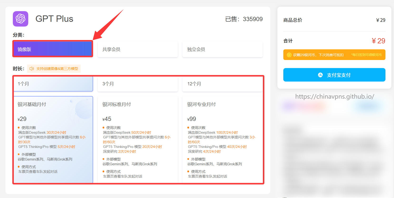 “ChatGPT Plus镜像版”不仅无需科学上网、无需注册账号,也没有封号风险,而且价格也非常便宜,每月仅需29元。该服务不仅支持GPT-5.1、GPT-4o等模型,还支持满血版DeepSeek-R1、马斯克的Grok-4.1,以及谷歌Gemini-3 Pro等顶尖大模型,让你能够同时体验多种前沿AI技术的强大功能。不过,“ChatGPT Plus镜像版”有使用次数限制,更适合ChatGPT轻度用户。