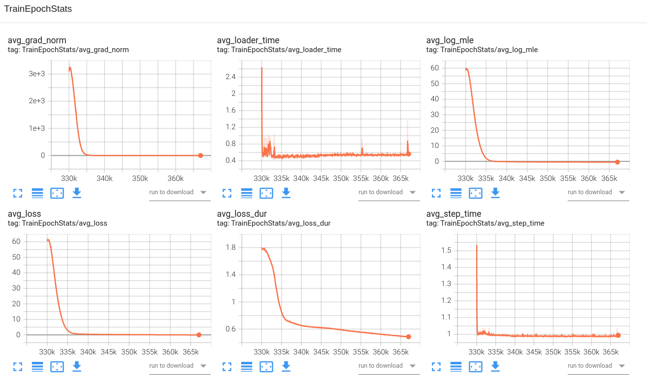 However the result I got is quite depressive. One good news is that it kind of mimiking a timbre of my voice, but no one can recognize any single word, it is just me babbling sound.. I also want to share the tensorboard information below.