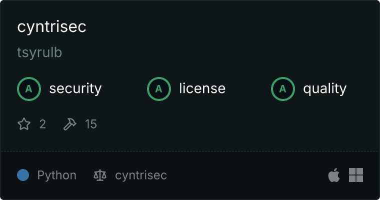 Beta Software Disclaimer: This tool is currently in BETA. It is provided "as is", without warranty of any kind. While Cyntrisec is a read-only analysis tool by default, the user assumes all responsibility for any actions taken based on its findings. Always review generated remediation plans and Terraform code before application.