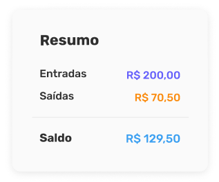 - Área de resumo, que traz as informações de entradas, saídas e saldos.