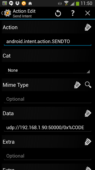 - Action = android.intent.action.SENDTO