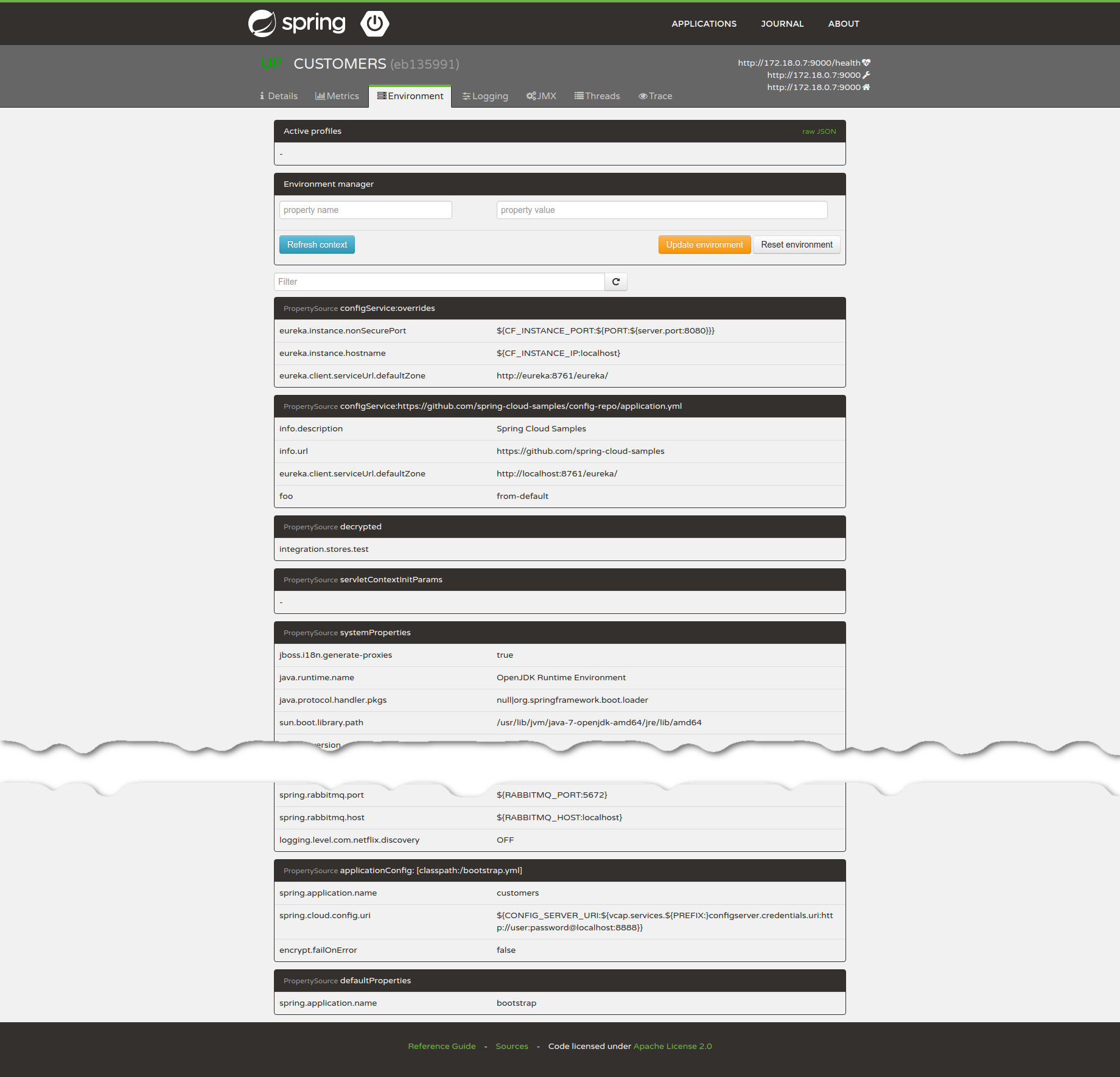 View and change Spring environment (via Spring Cloud)