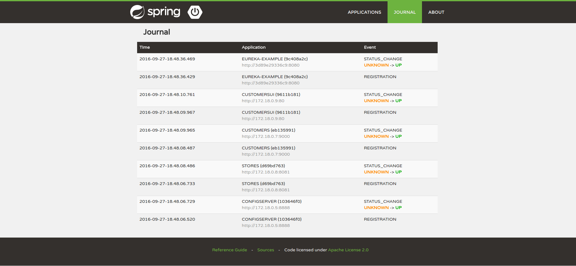 - Event journal of status changes (non persistent)