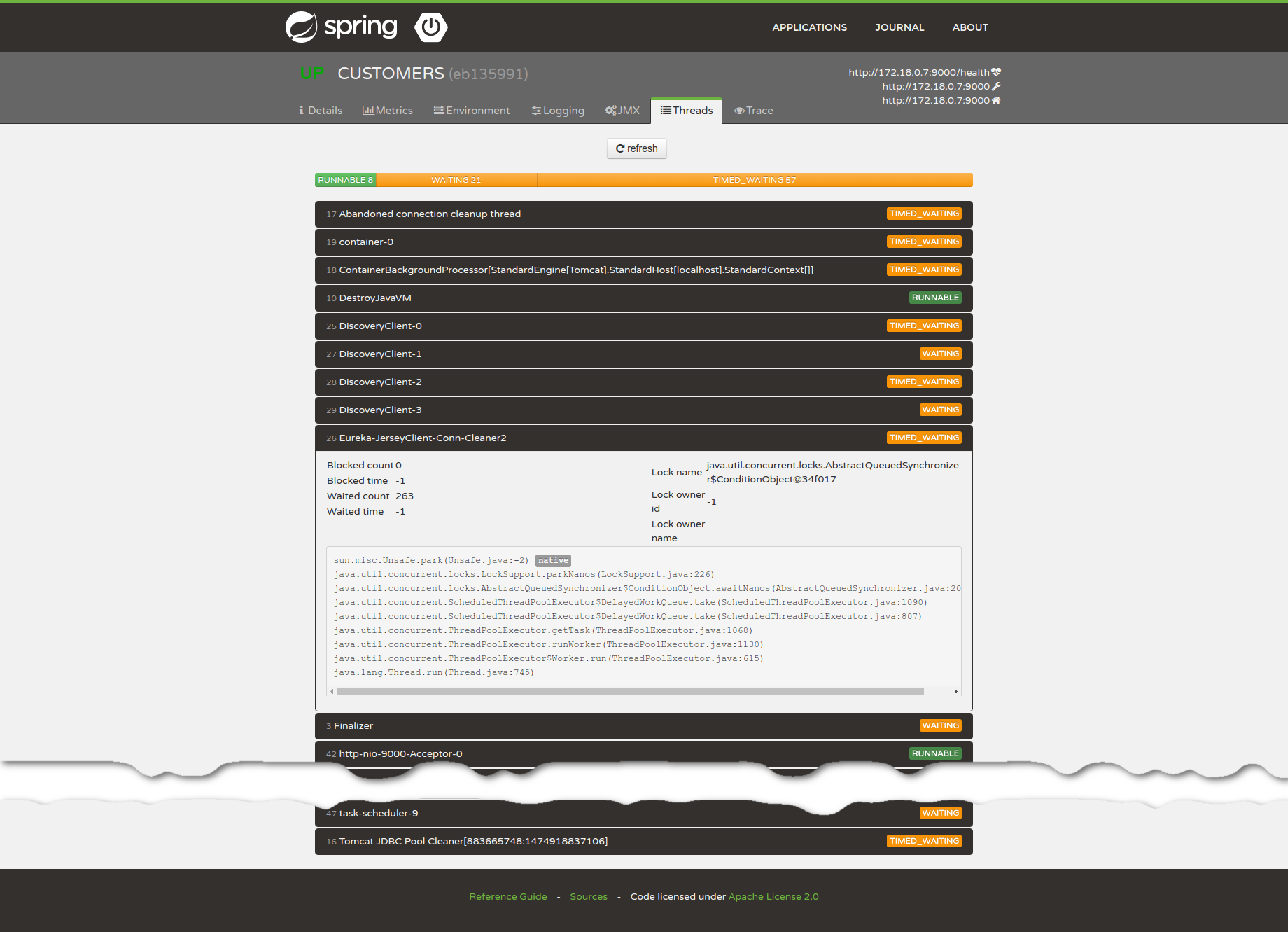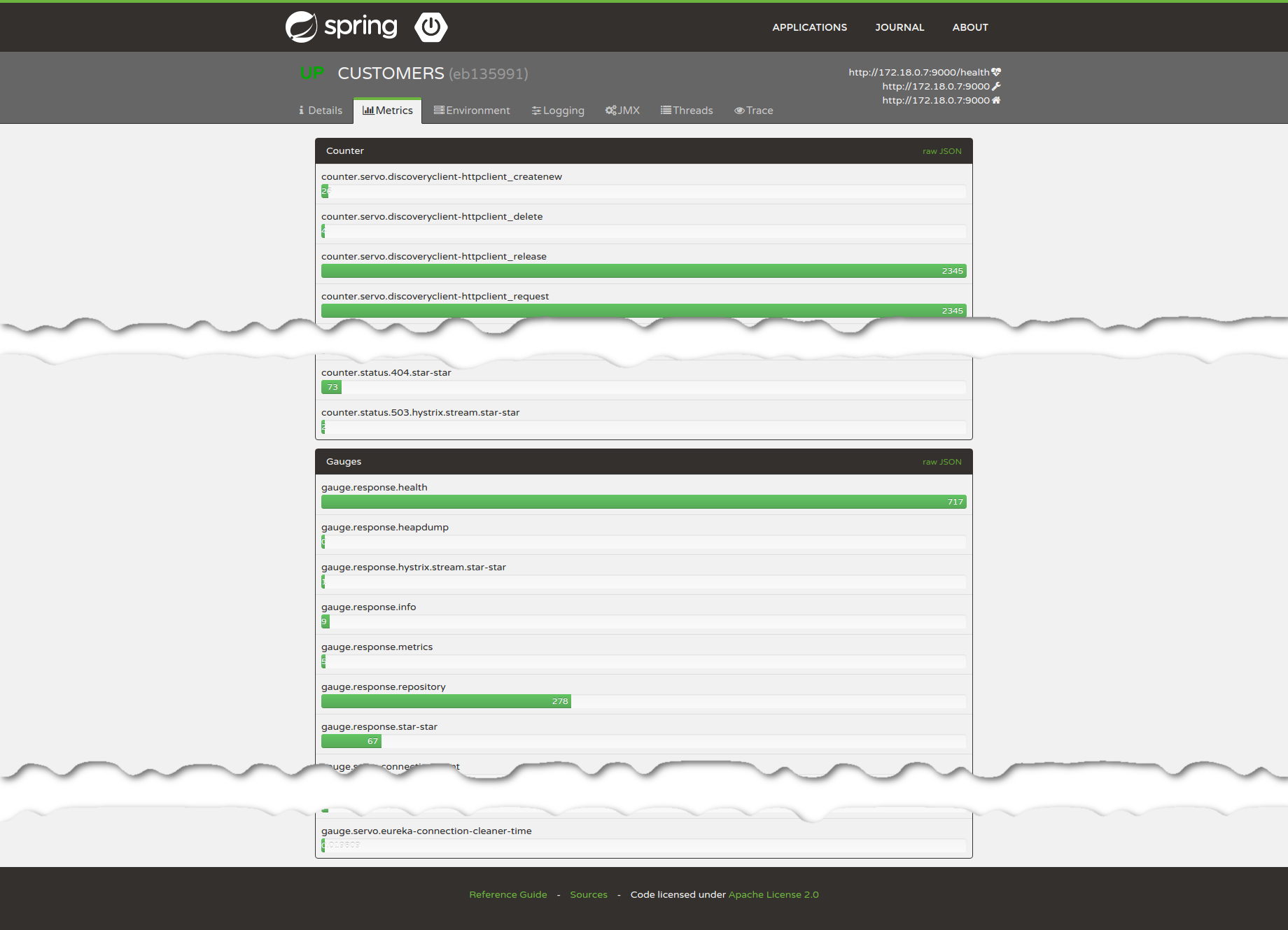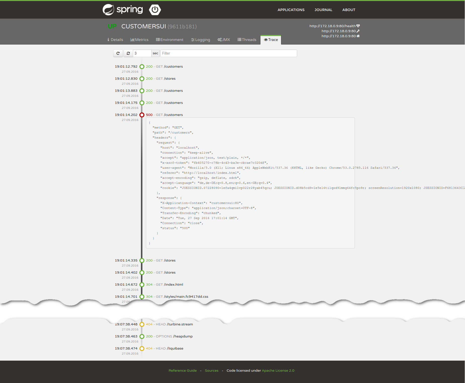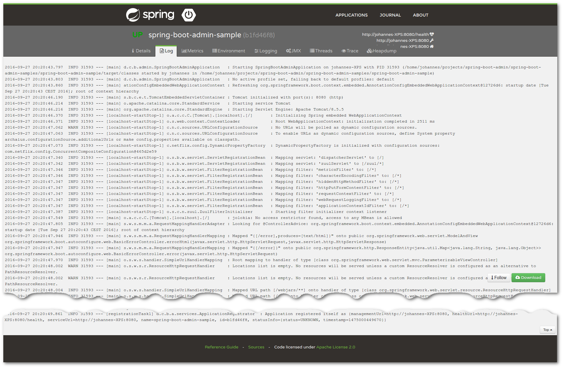 This application provides a simple UI to administrate Spring Boot applications. It provides the following features for registered application.