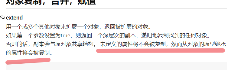 - 还有一个问题是下面这句话:然而从对象的原型继承的属性将会被复制。大佬可以举几个例子到文档中吗?这2句话实在没看懂。麻烦大佬了。