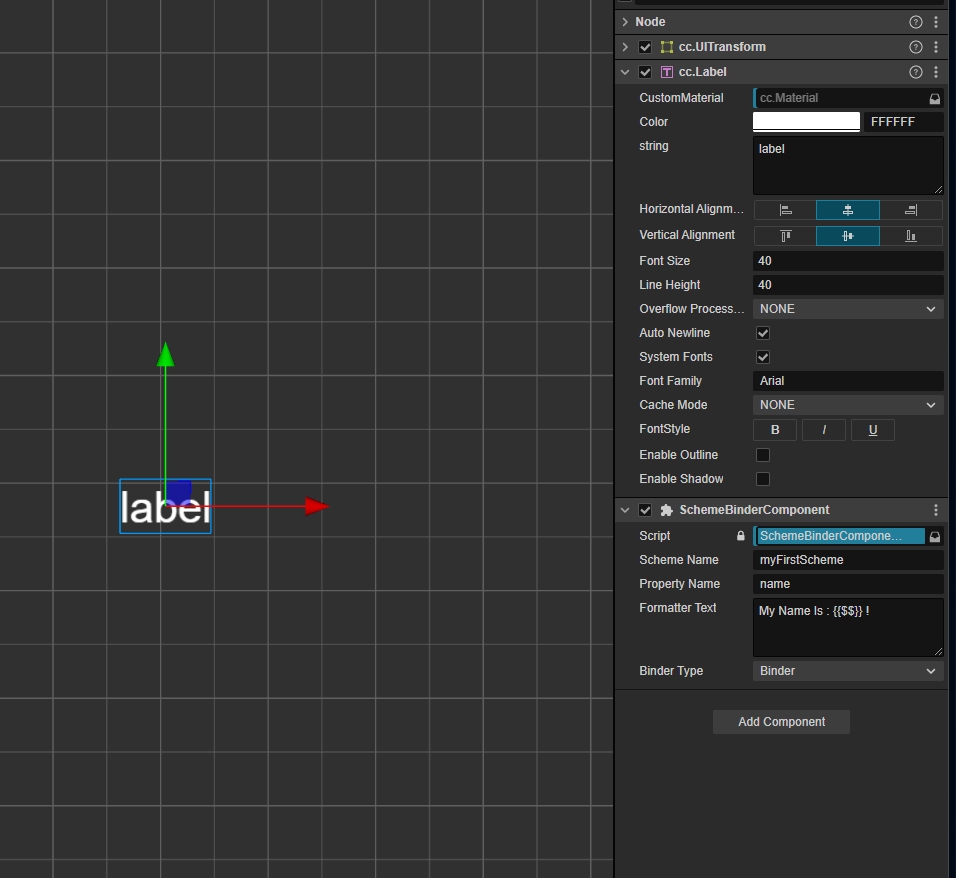 }It is so simple, add SchemeBinderComponent.Code.ts to a label component like the following image