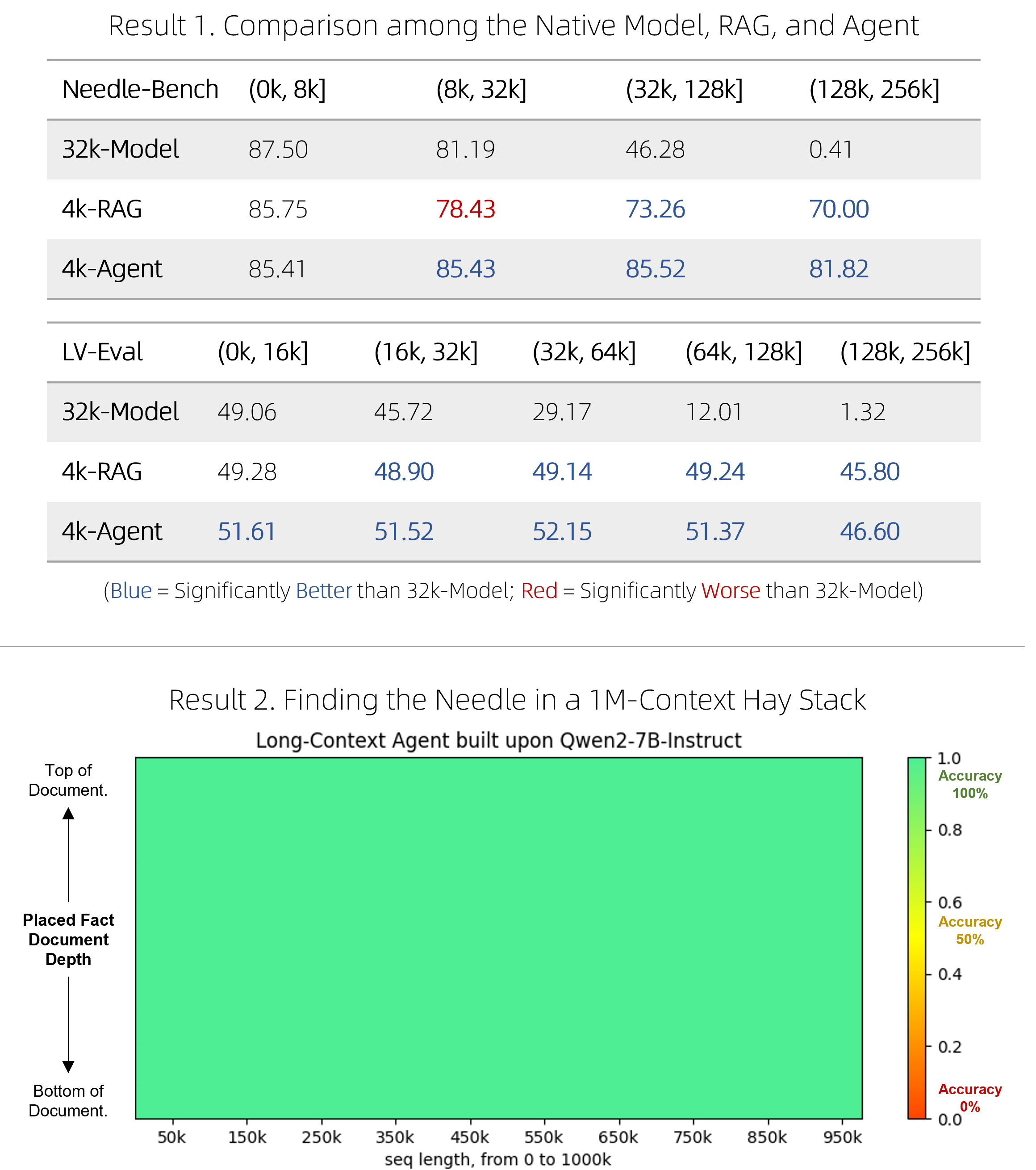 We have released a fast RAG solution, as well as an expensive but competitive agent, for doing question-answering over super-long documents. They have managed to outperform native long-context models on two challenging benchmarks while being more efficient, and perform perfectly in the single-needle "needle-in-the-haystack" pressure test involving 1M-token contexts. See the blog for technical details.
