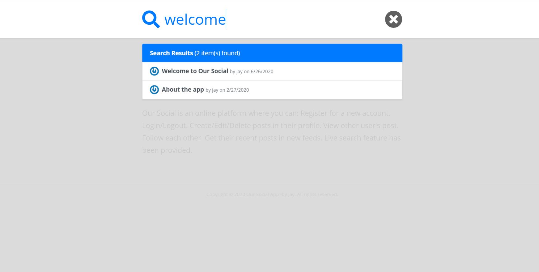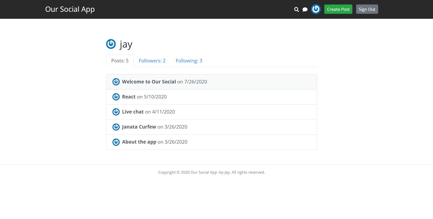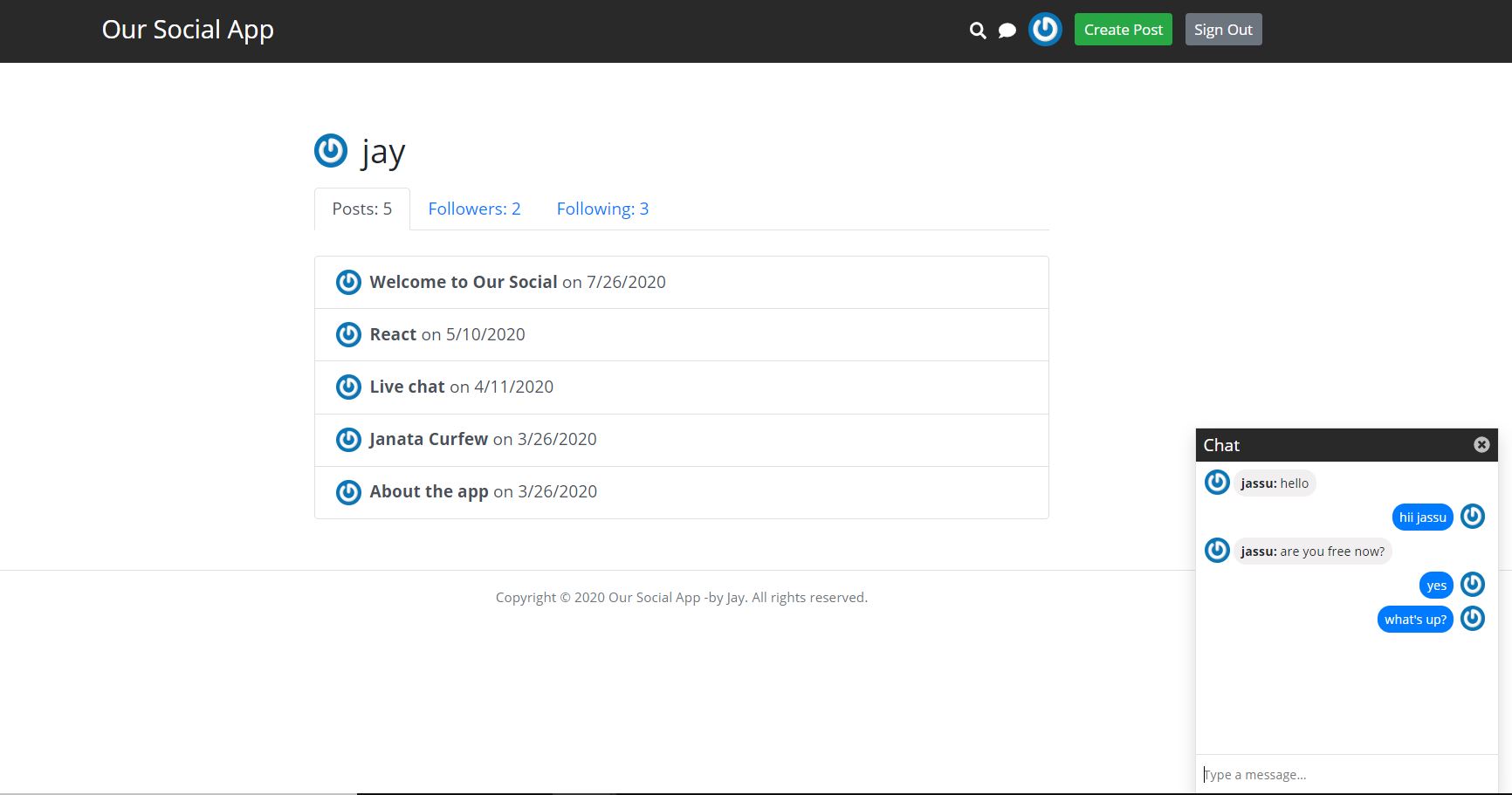 Project url : https://oursocial.herokuapp.com/ . Go to the project: Click here