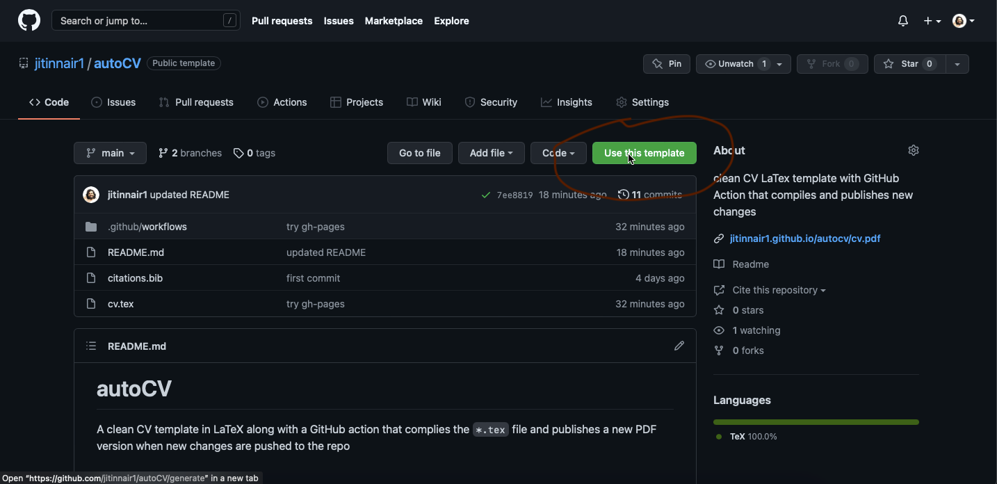 Now, click on cv.tex and update the cv with your particulars