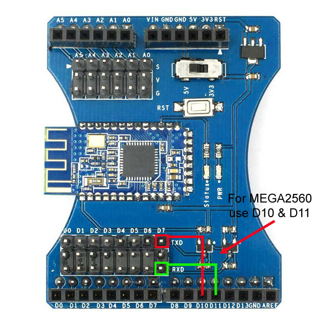 - Set HM-10 TX and RX to D2 and D3 respectively as shown.