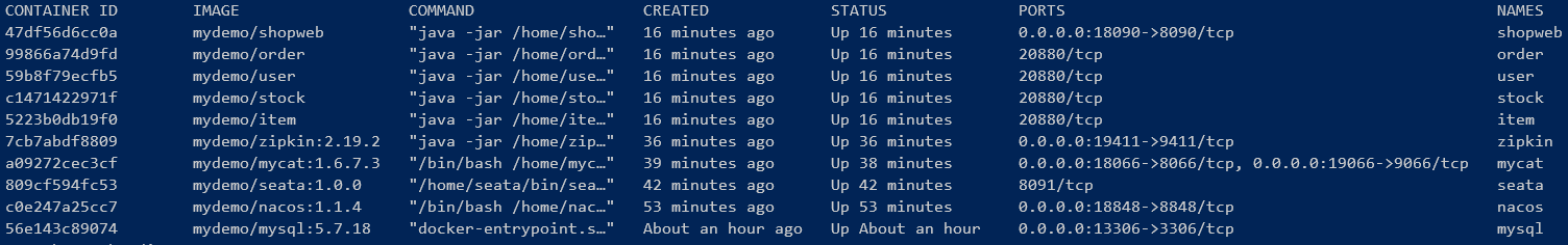 ./package.sh -mycat -seata -zipkin # 编译打包演示应用