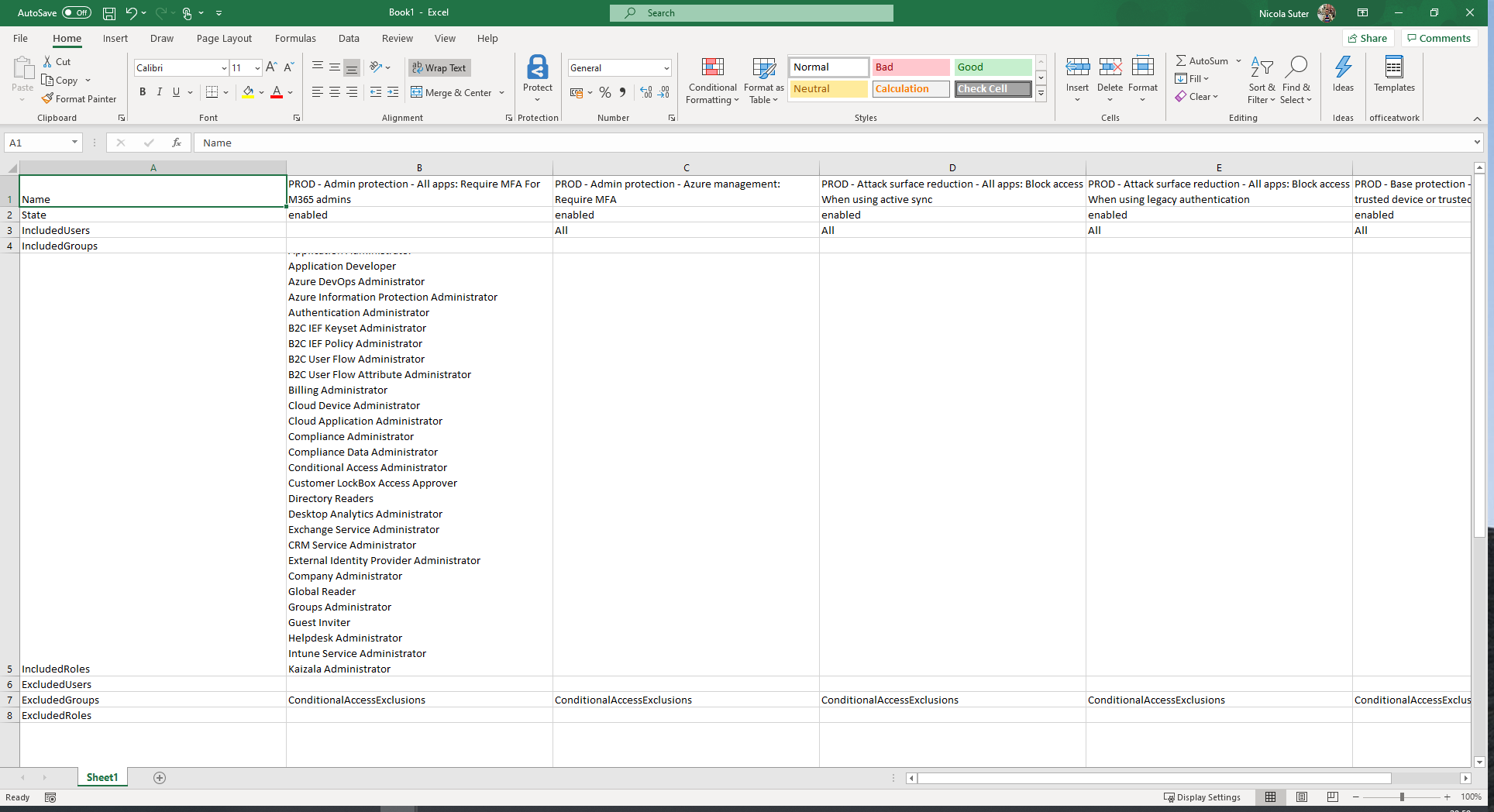 This PowerShell script adapts functionality from the Modern Workplace Concierge and documents your Conditional Access Policies. The script exports all the data as a csv file which can be pretty formatted as excel workbook.