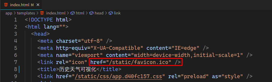 favicon.ico位置有变动,需要修改templates/index.html对应内容