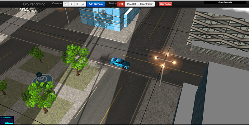 Add Cameraand its position will be pushed to the camera queue and will be restored even if you refresh the page (thanks tolocalstorage) - (Chrome only) There's some electronic ambient music (hope you like it!, it's the song used in the game GRITS: http://gritsgame.appspot.com/) that changes the strength of the radial blur in runtime :) just make sure the car is going fast to watch it in action. (NOTE: Since this feature analizes the song loaded in runtime you can change it! Add your favorite song to: