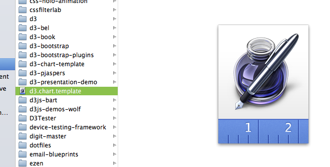 If you git clone this repo it conflicts with .template files for Pages since .template is the extension for Pages templates.  I renamed the folder to d3-chart-template to make it work on my local machine.
