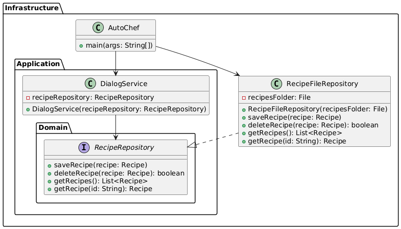 mit der RecipeFileRepository-Implementierung) von der inneren Schicht (Domänenschicht) abhängen