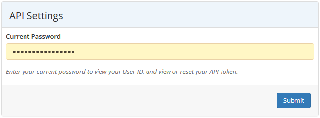 Select [Your Name] (top right of window), then API Settings. The API Settings window is displayed.