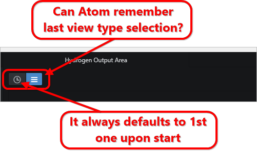 Hi, it'd be great if Atom could remember and recall last hydrogen output area view type selection. Currently, it always defaults to 1st one. Thanks.