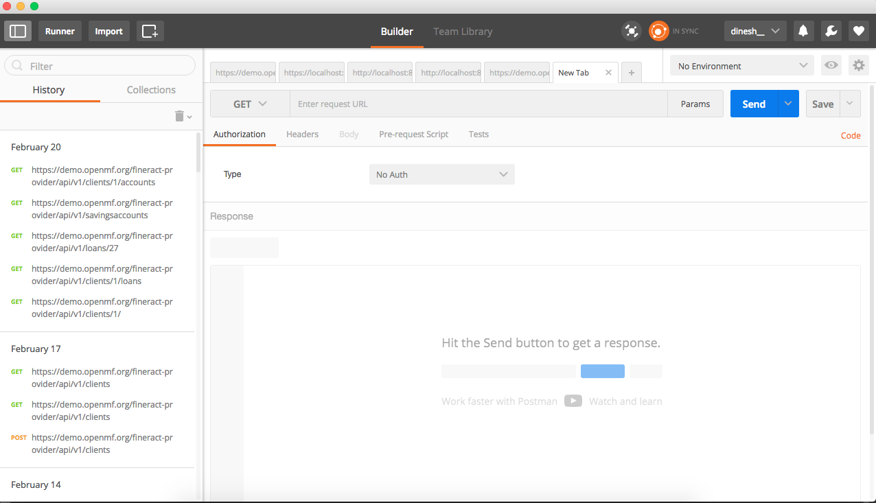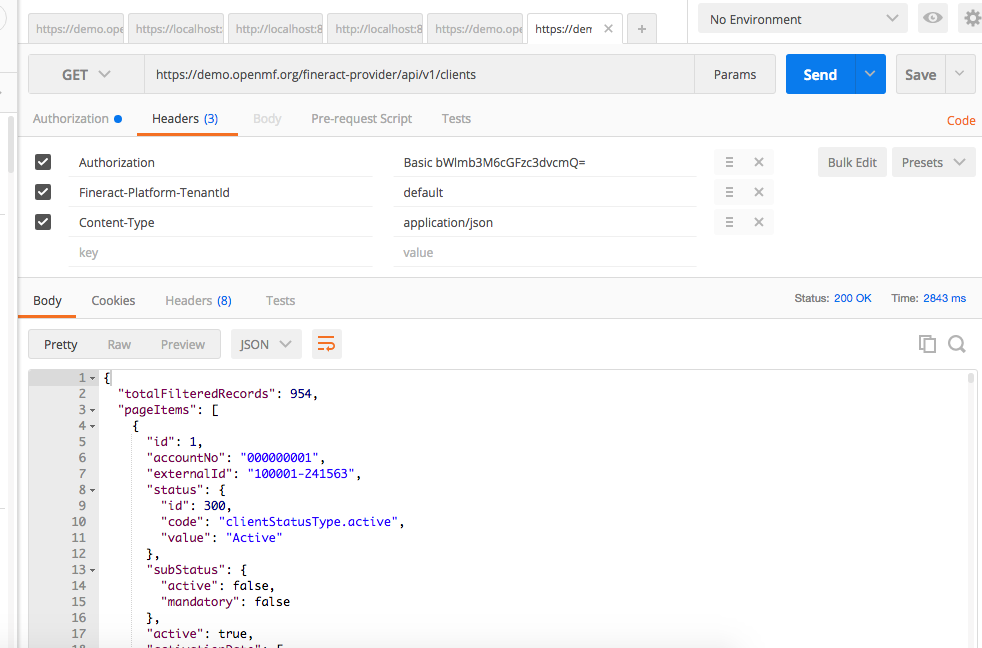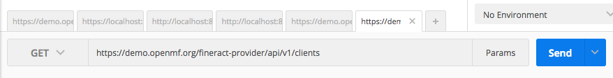 7. Fill out the URL as seen in the documentation. In this case https://demo.openmf.org/fineract-provider/api/v1/clients