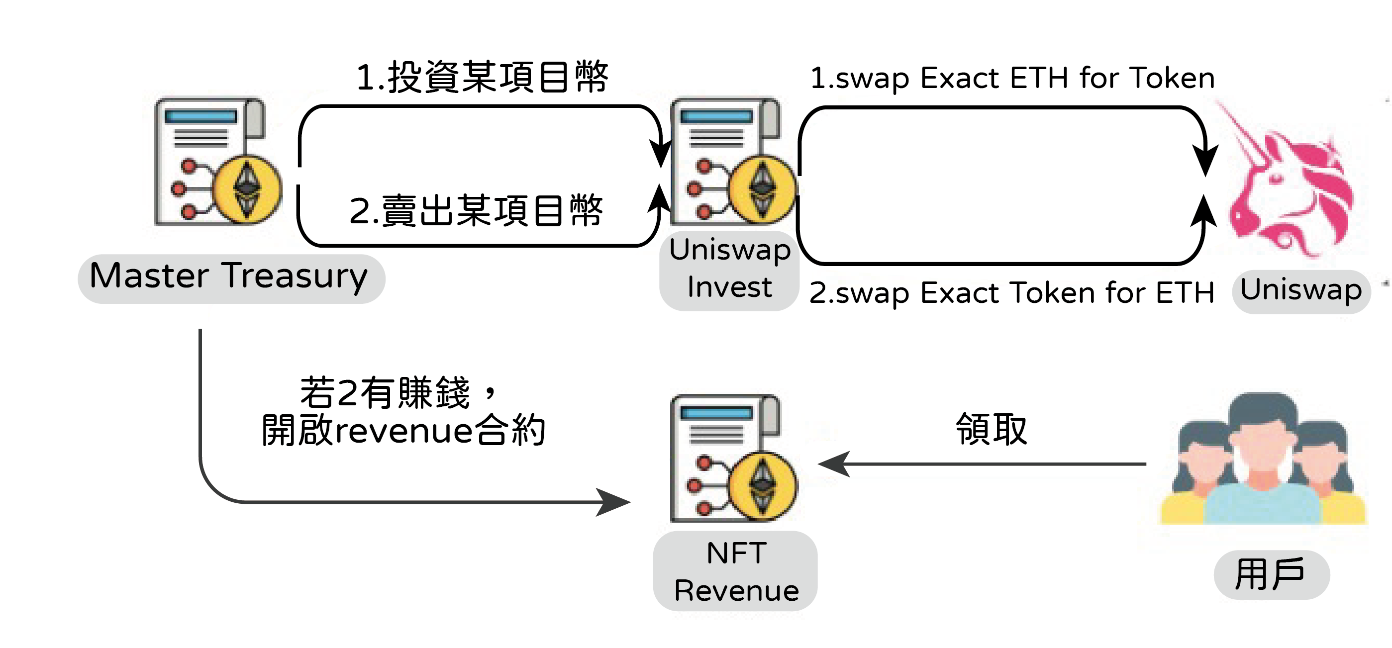 ps: Treasury為中低風險型投資操作,Master Treasury為中高風險型投資操作。 ps: Treasury和Master Treasury為多簽錢包,owner由理事會成員和項目團隊組成。
