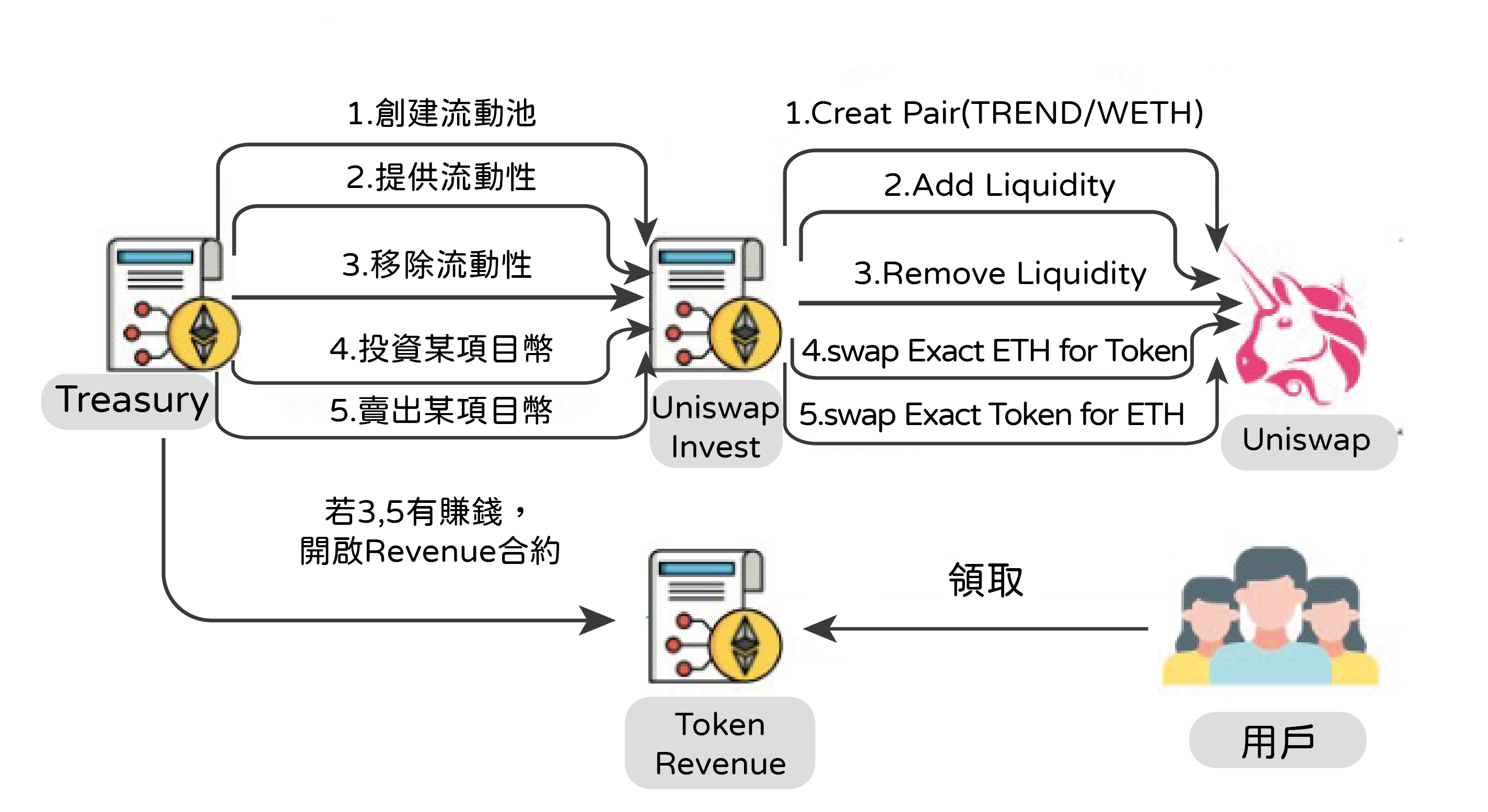 - 持有Trend Token越多,便有機會從Treasury分到較多的分潤。