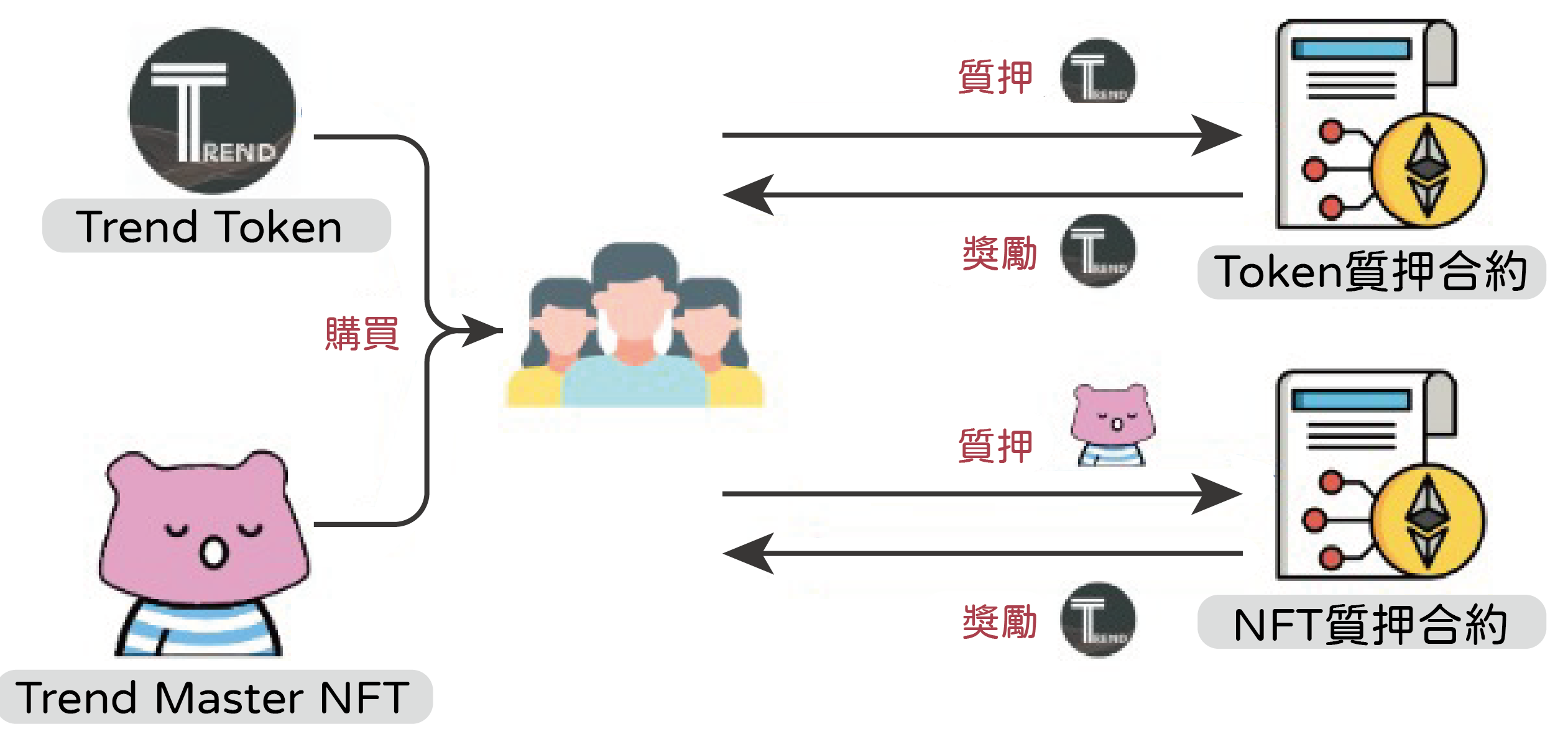 - 持有Trend Token及Trend Master NFT的Holder可以質押賺取Trend Token作為利息。