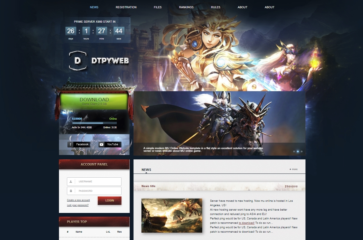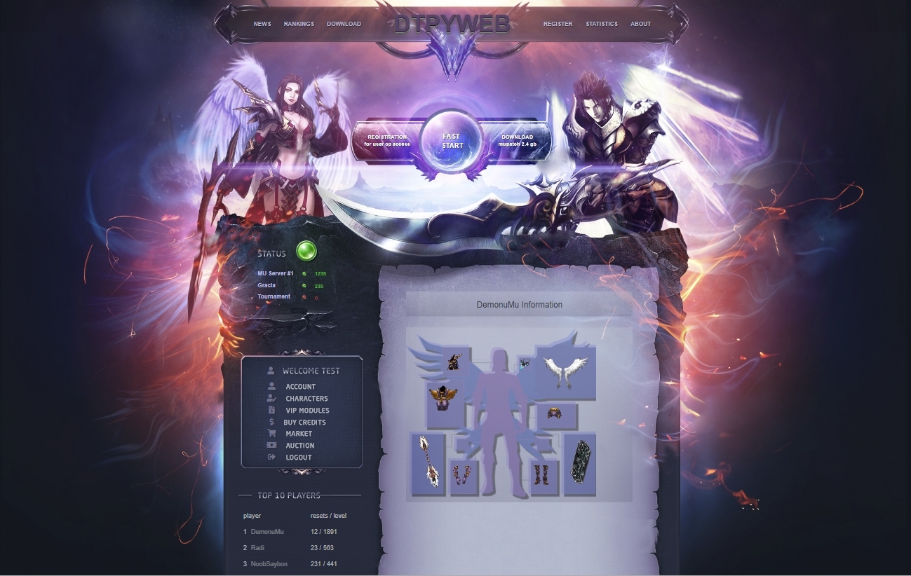 DTpyWeb is another MuOnline website but this time instead in PHP it is written in Python with Flask and Jinja2 template system. I created it for DarksTeam Forum users first.